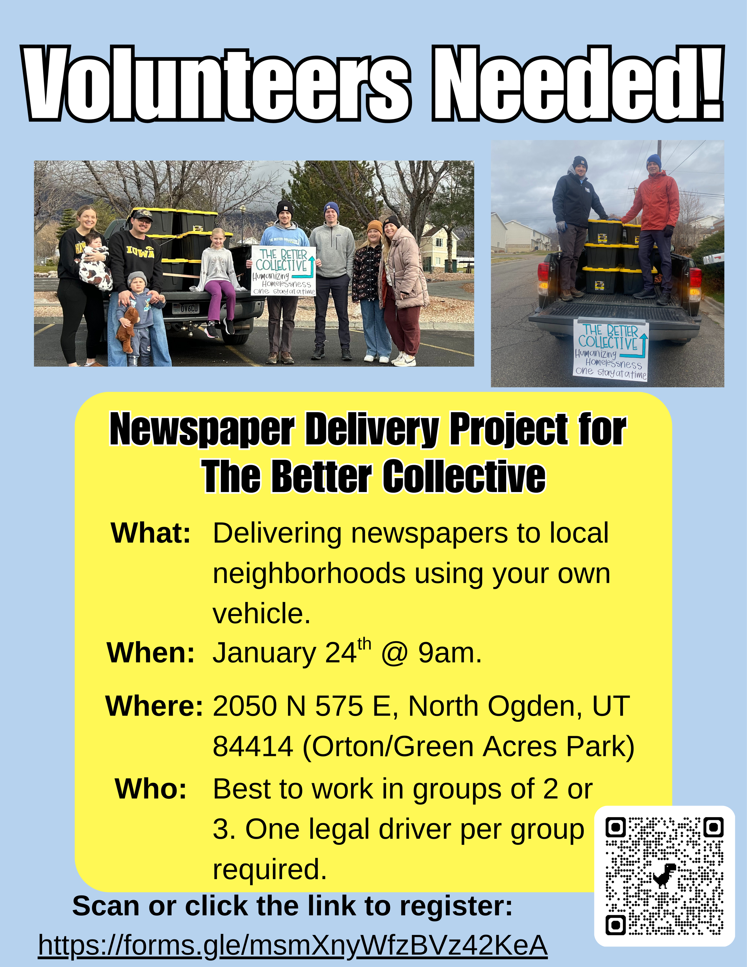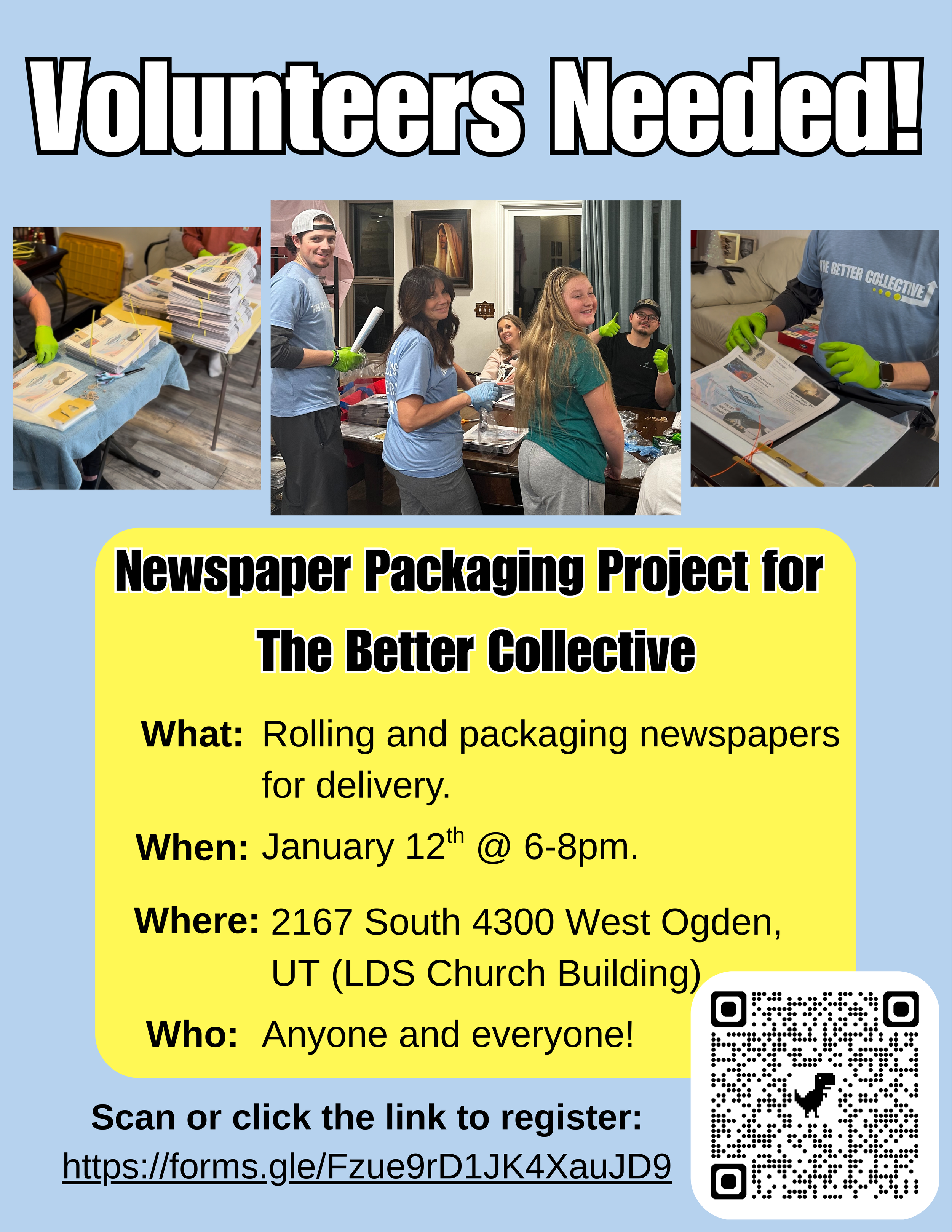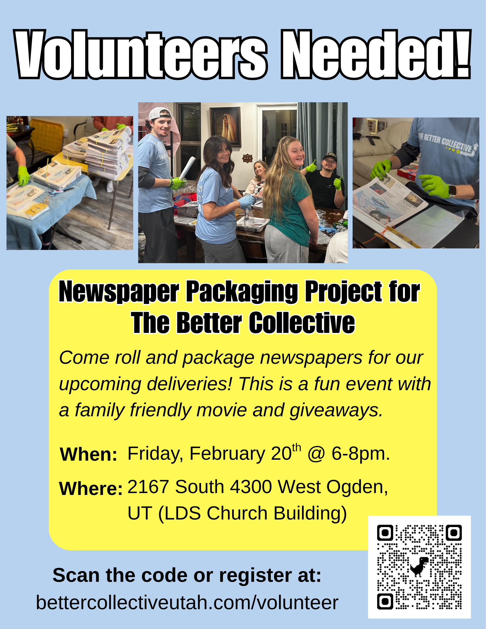 TBC is in regular need of volunteers to help with various events and elements of our operation. Typical events include helping package and prepare papers for delivery, delivering papers, and more. If you're interested in volunteering with us, please fill out the form below to receive notifications about upcoming projects.